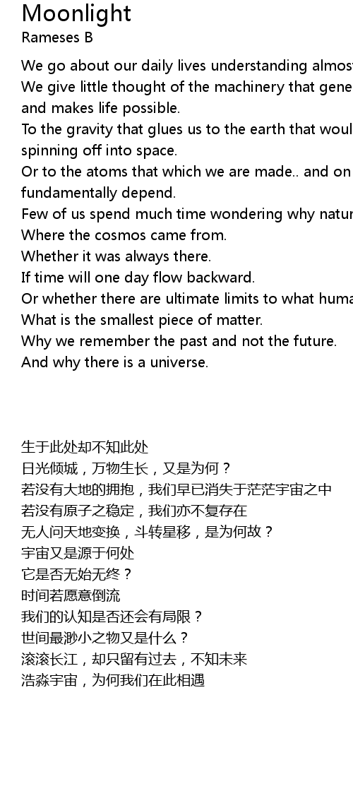| [03:13.90] | 无人问天地变换,斗转星移,是为何故? |
