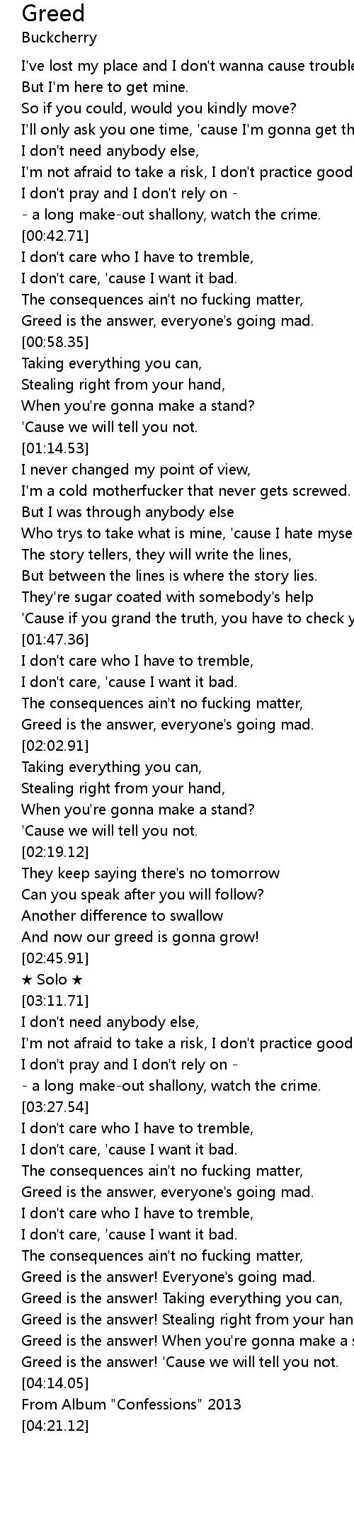 | [04:07.40] | Greed is the answer! ' Cause we will tell you not. |