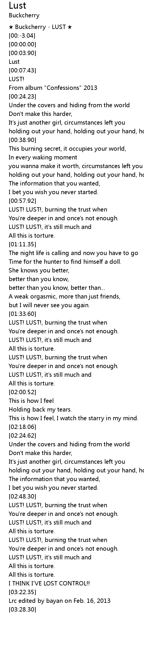 | [00:12.48] | LUST! |