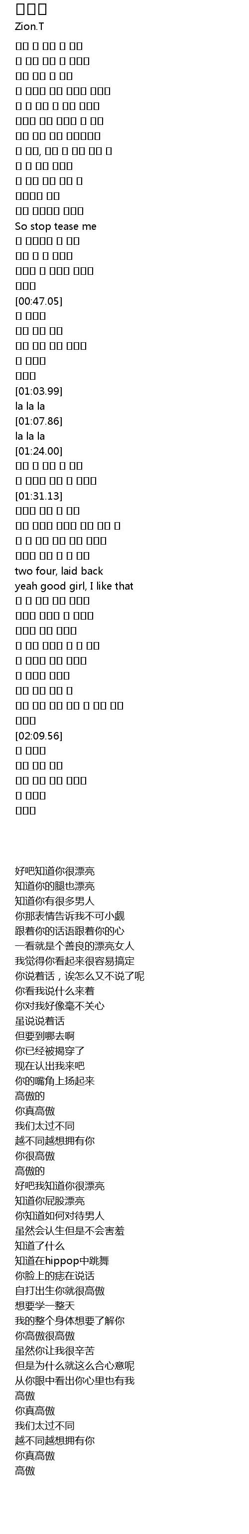 | [01:33.94] | 낯은 가려도 부끄럼 타진 않아 넌 |