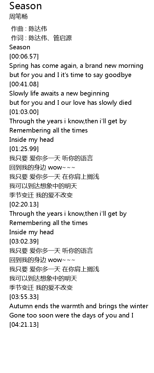 | [02:10.52] | 季节变迁 我的爱不改变 |