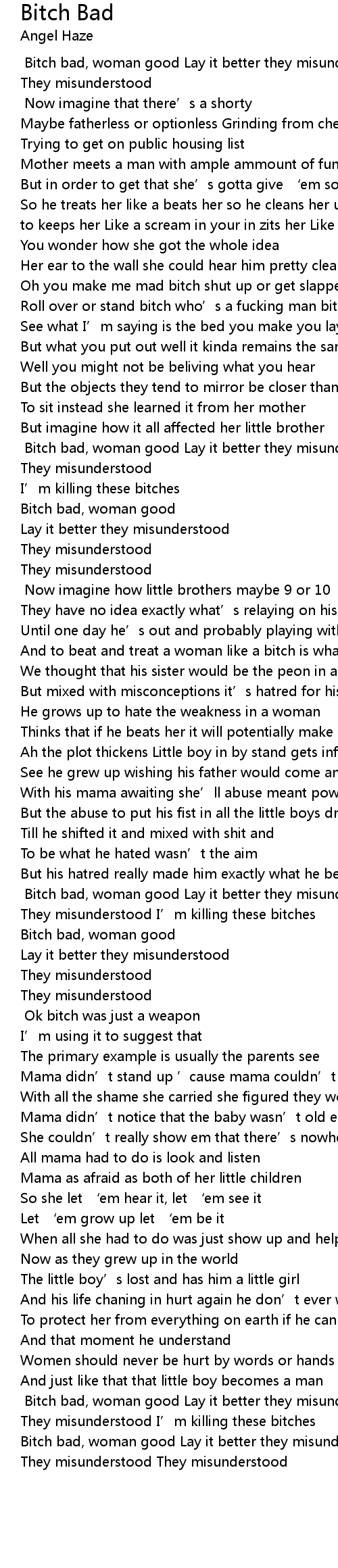 | Hook Bitch bad, woman good Lay it better they misunderstood | |