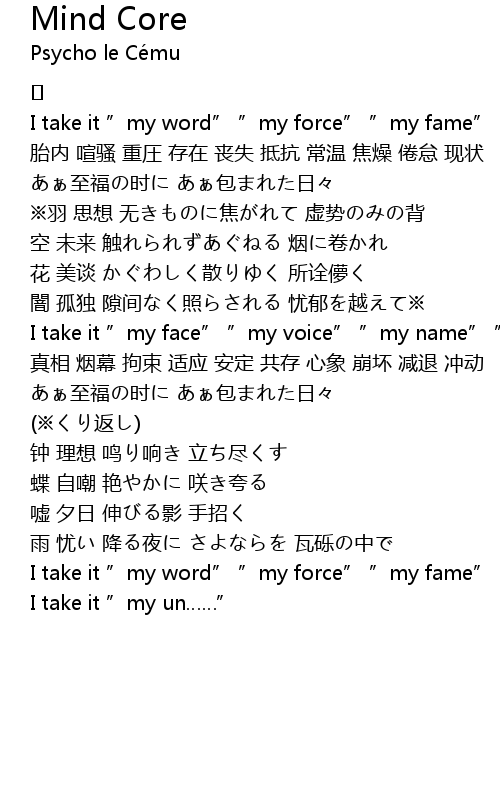 | 歌曲 | Mind Core |