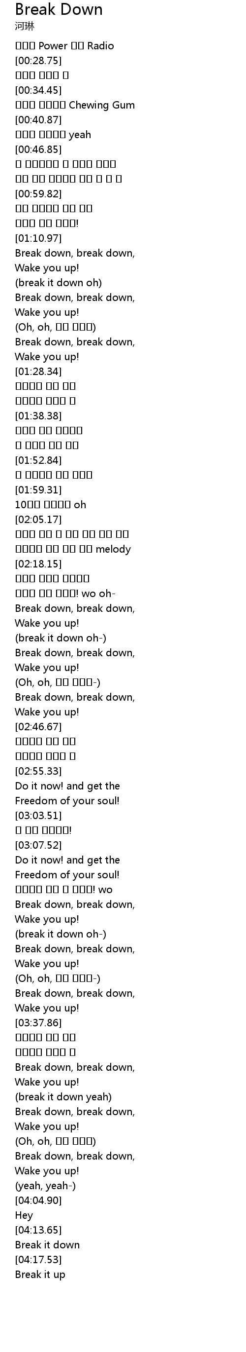 Break down, break down, |