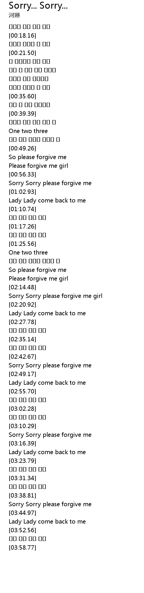 | [02:15.43] | Sorry Sorry please forgive me girl |