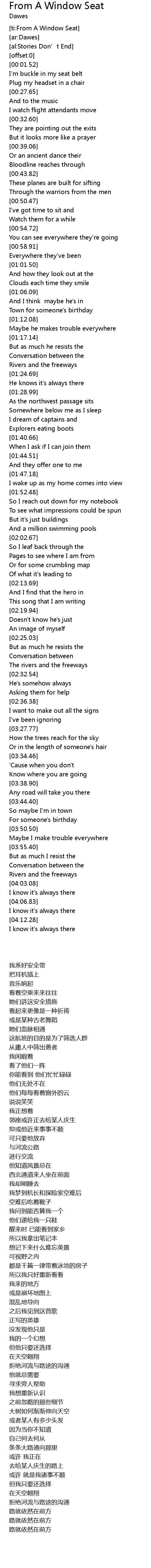 | [01:36.01] | 我梦到机长和探险家空难后 |