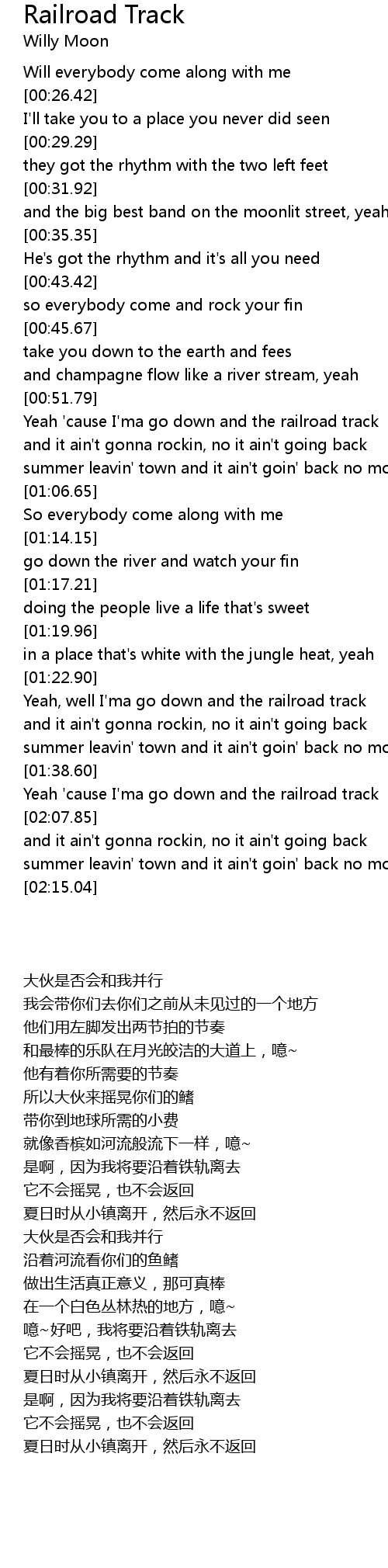 Yeah 'cause I'ma go down and the railroad track |