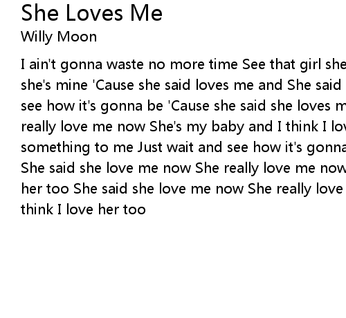 I ain't gonna waste no more time See that girl she's so fine And I know that she's mine 'Cause she said loves me and She said something to me Just wait and see how it's gonna be 'Cause she said she loves me She said she love me now She really love me now She's my baby and I think I love her too She, she said something to me Just wait and see how it's gonna be 'Cause she said she loves me She said she love me now She really love me now She's my baby and I think I love her too She said she love me now She really love me now Well she's my baby and I think I love her too |