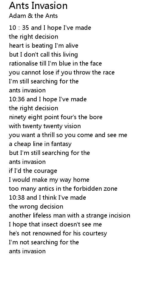 | 歌曲 | Ants Invasion |