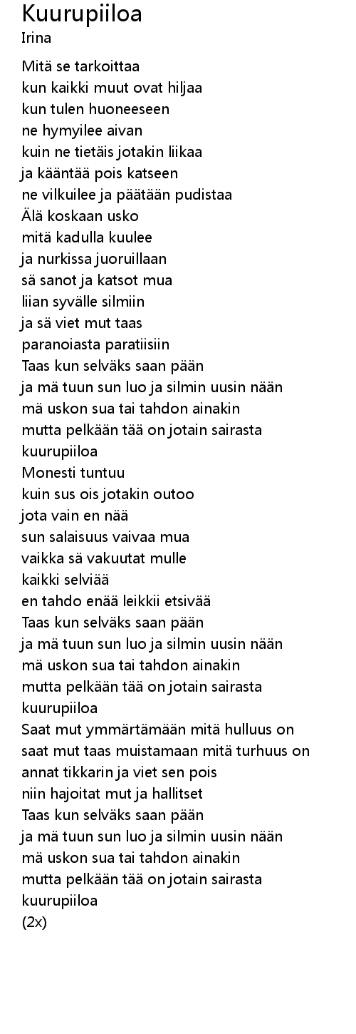 | ja mä tuun sun luo ja silmin uusin nään | |