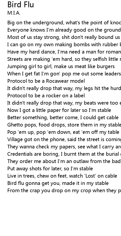Bird flu gonna get you, made it in my stable |