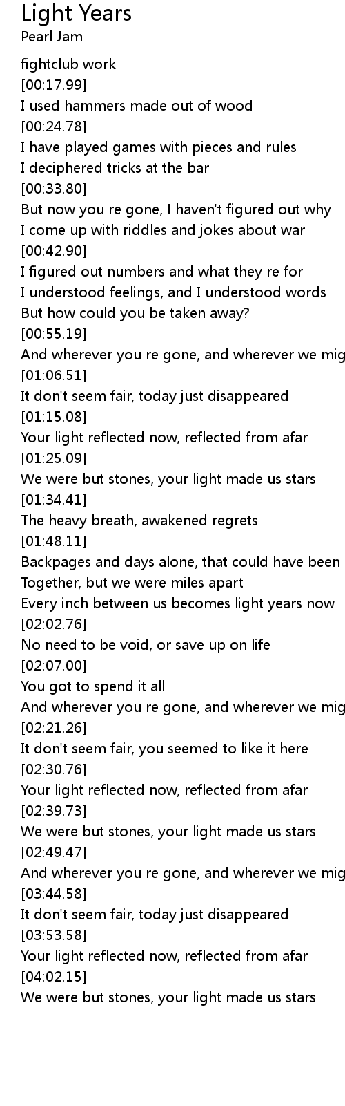 Light Years 歌词