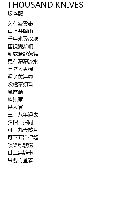 | 歌曲 | THOUSAND KNIVES |