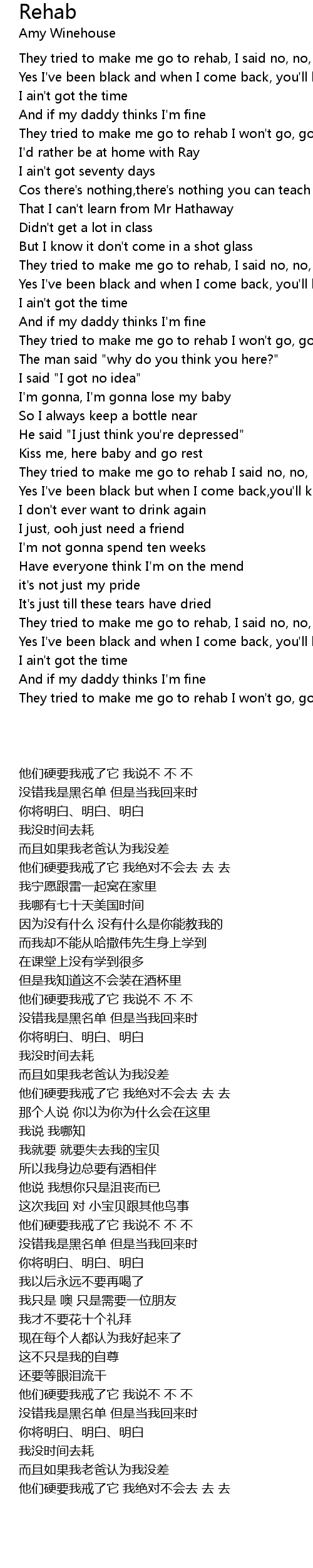 They tried to make me go to rehab I said no, no, no |