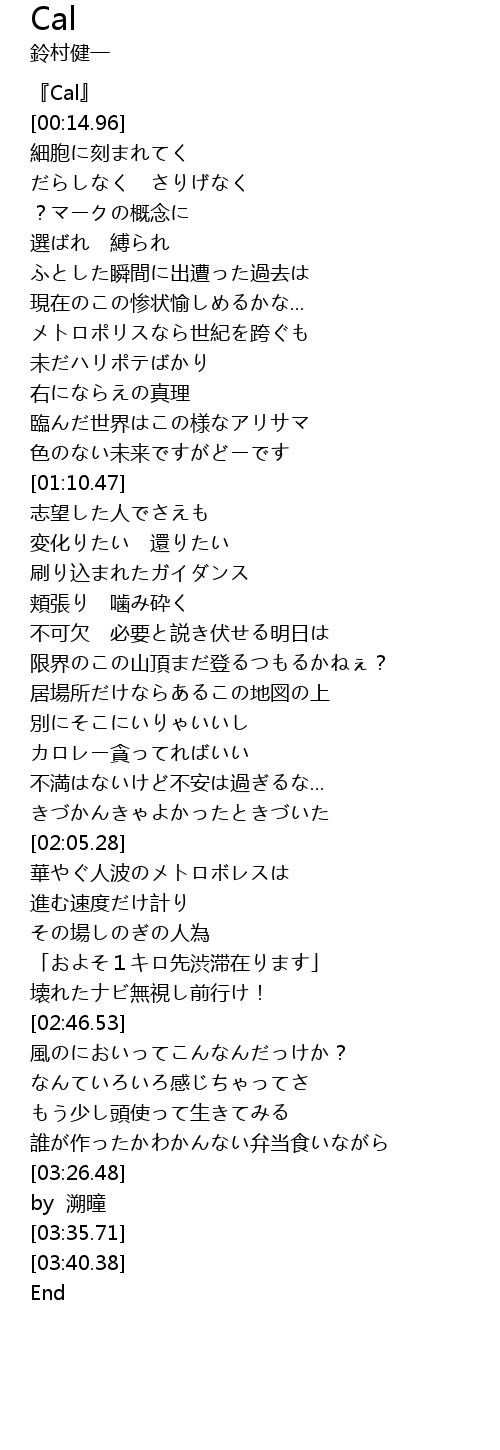 | [00:00.00] | 『Cal』 |