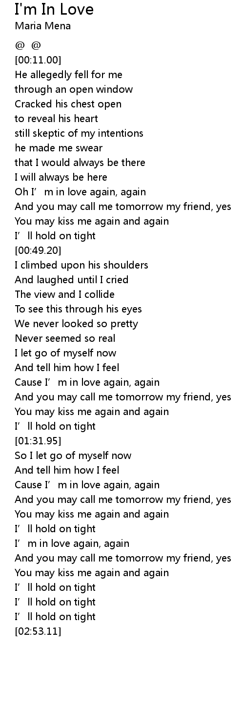 | [01:18.94] | And you may call me tomorrow my friend, yes |