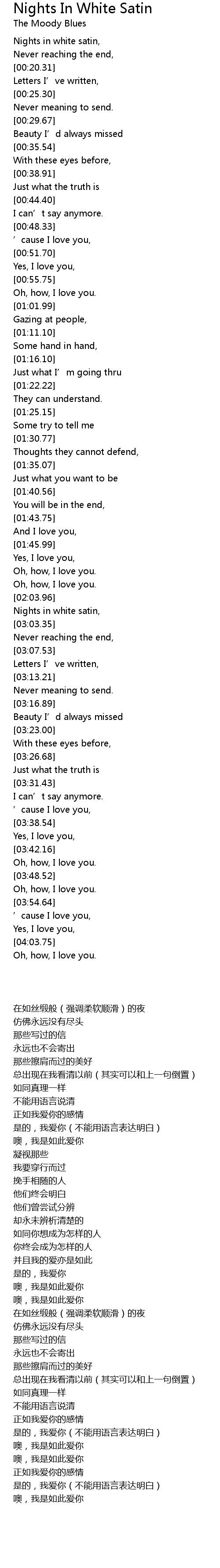 | [00:13.01] | 在如丝缎般(强调柔软顺滑)的夜 |