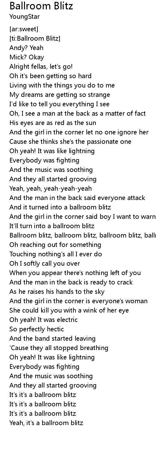 Ballroom blitz, ballroom blitz, ballroom blitz, ballroom blitz |