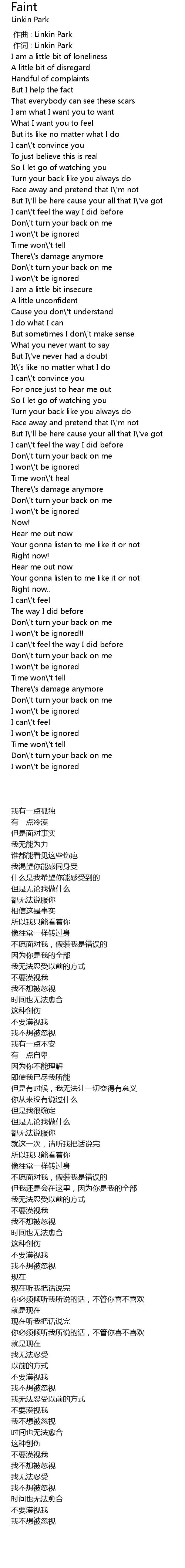 | [00:00.00] | 作曲 : Linkin Park |