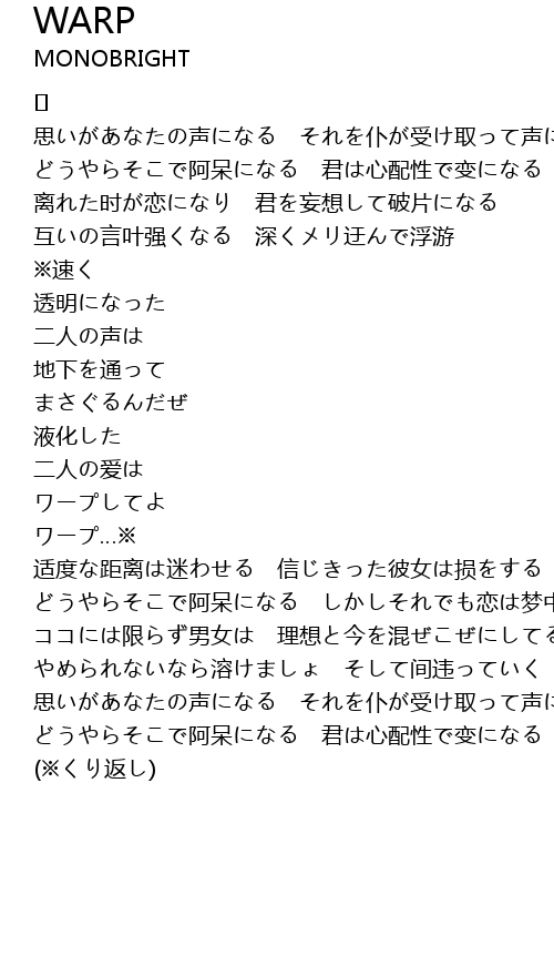 | 离れた时が恋になり 君を妄想して破片になる | |