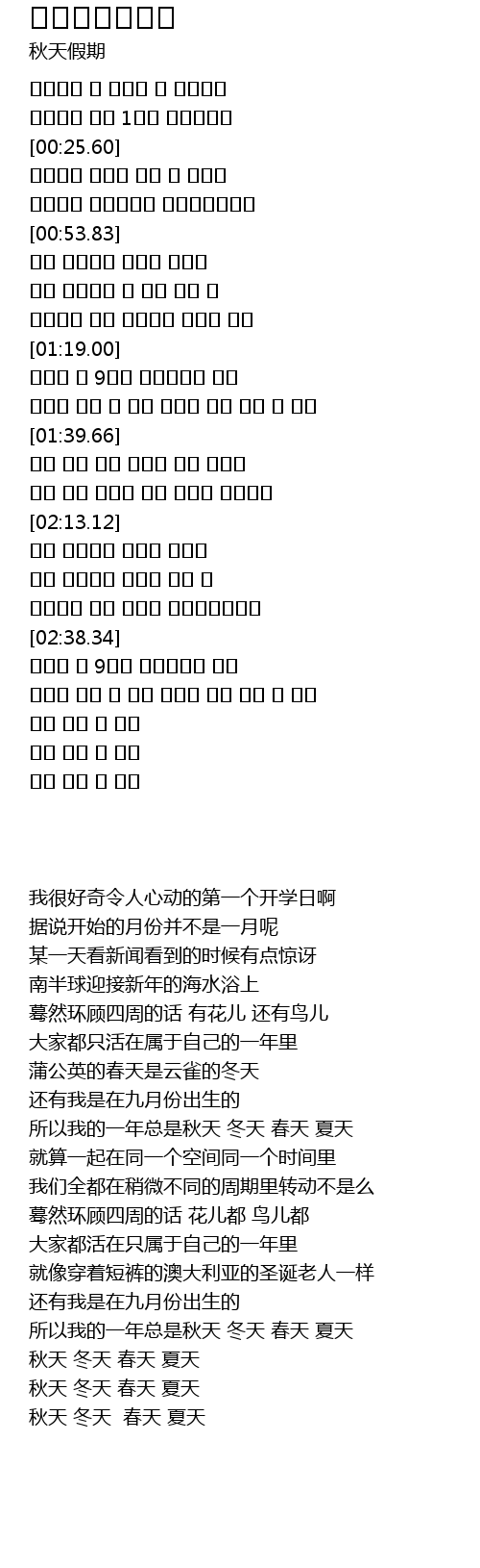 | [02:58.72] | 秋天 冬天 春天 夏天 |