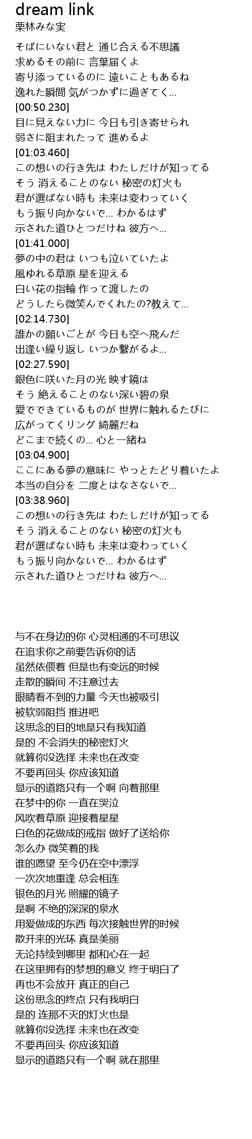 | 歌曲 | dream link |