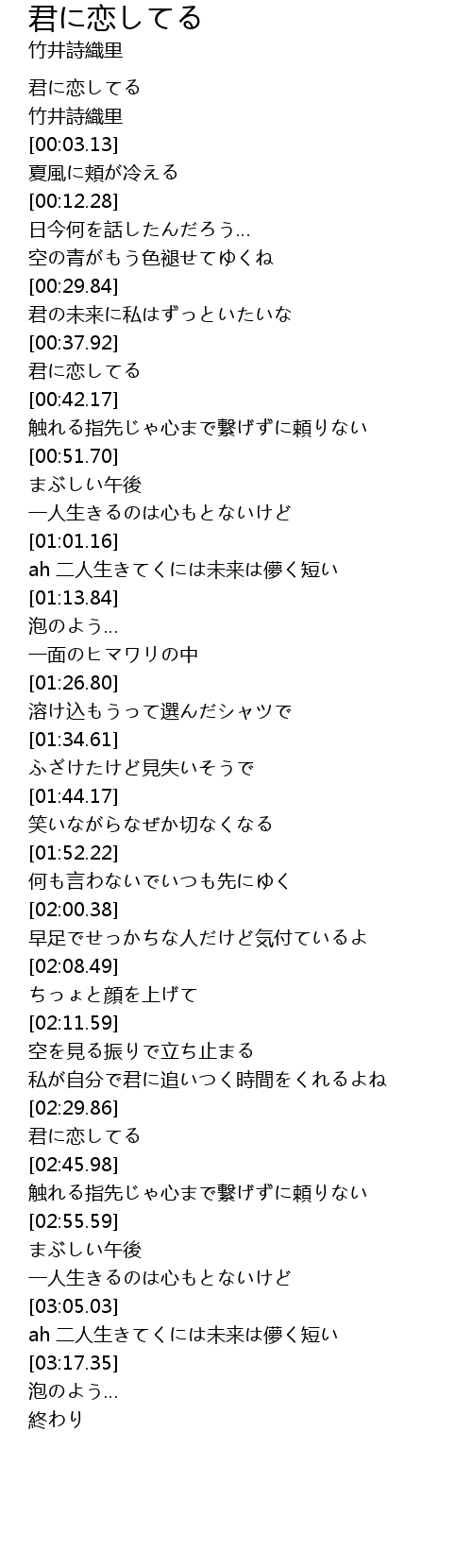 | [00:31.40] | 君の未来に私はずっといたいな |