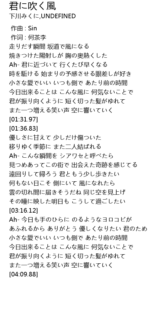 | [03:54.13] | 君が振り向くように 短く切った髪がゆれて |