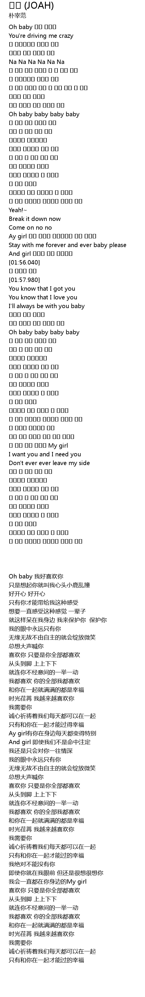 | [00:22.240] | Oh baby 我好喜欢你 |