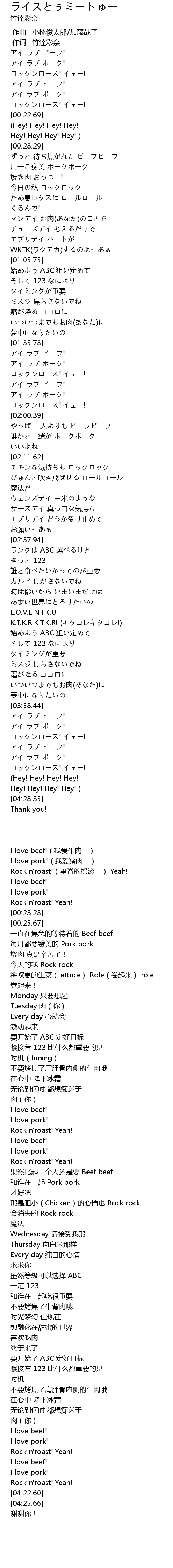 | [00:50.97] | マンデイ お肉(あなた)のことを |