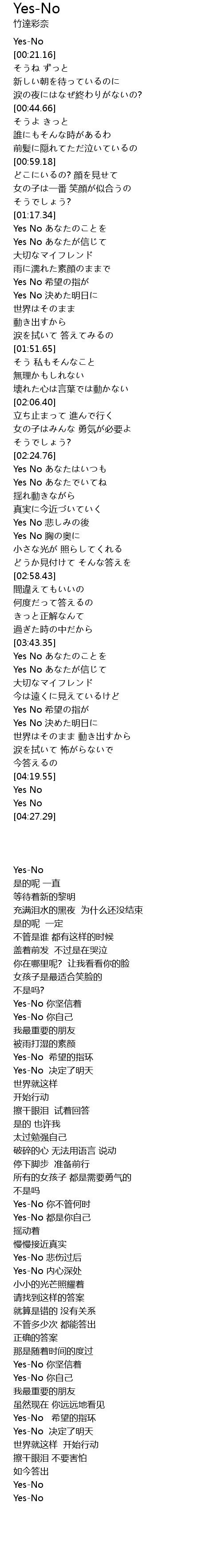 | [03:58.68] | Yes No xī wàng zhǐ |