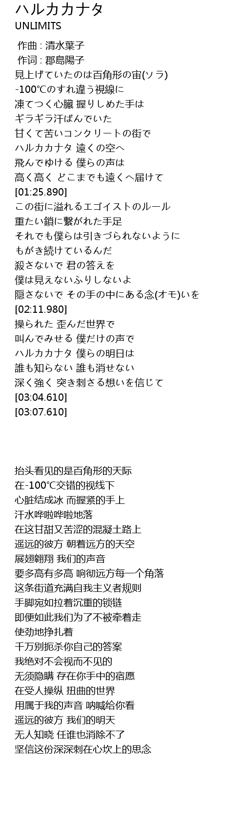 | [02:45.040] | ハルカカナタ 僕らの明日は |