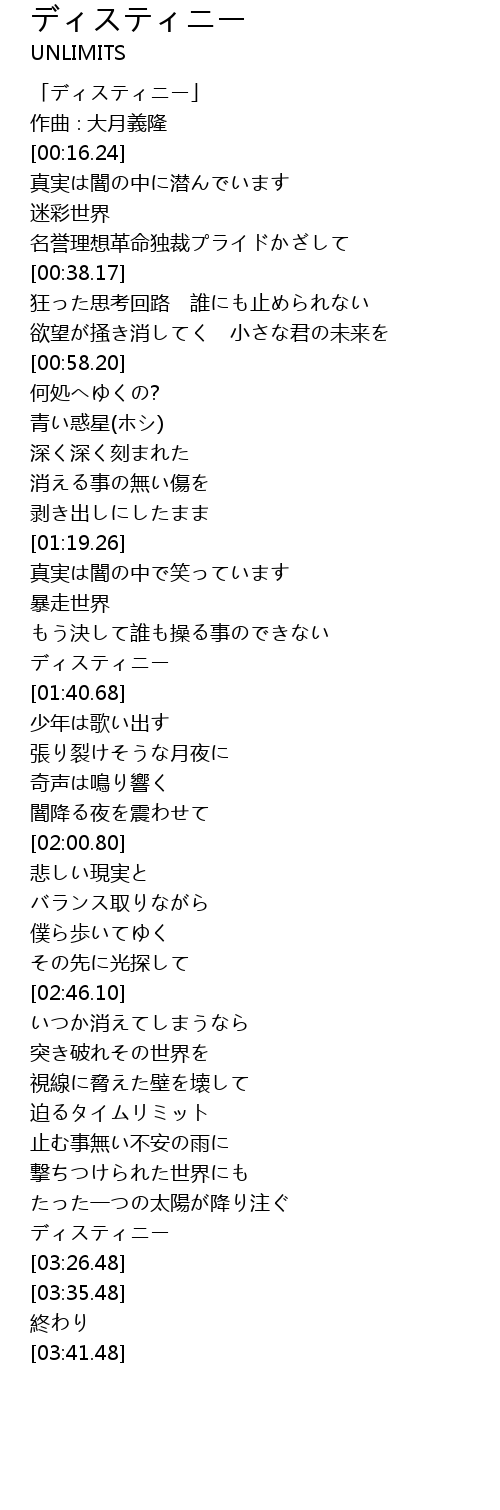 | [00:48.24] | 欲望が掻き消してく 小さな君の未来を |