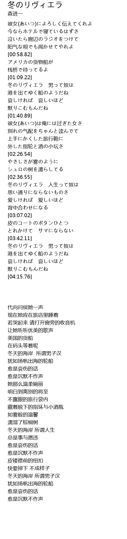 | [03:43.95] | 冬のリヴィエラ 男って奴は |