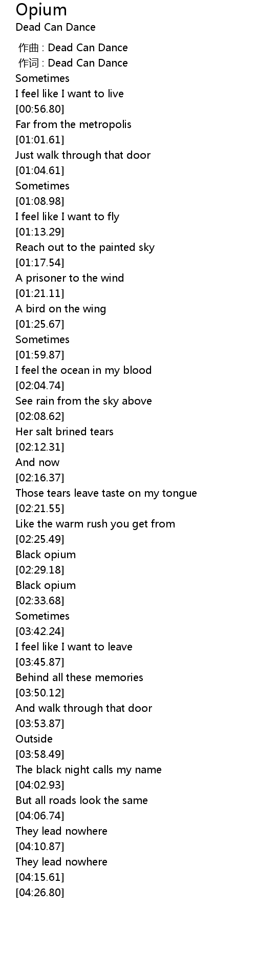 | [00:00.00] | zuo qu : Dead Can Dance |