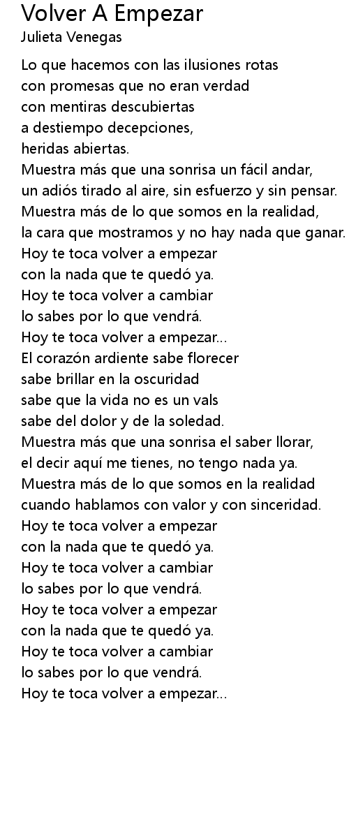 | 歌曲 | Volver A Empezar |