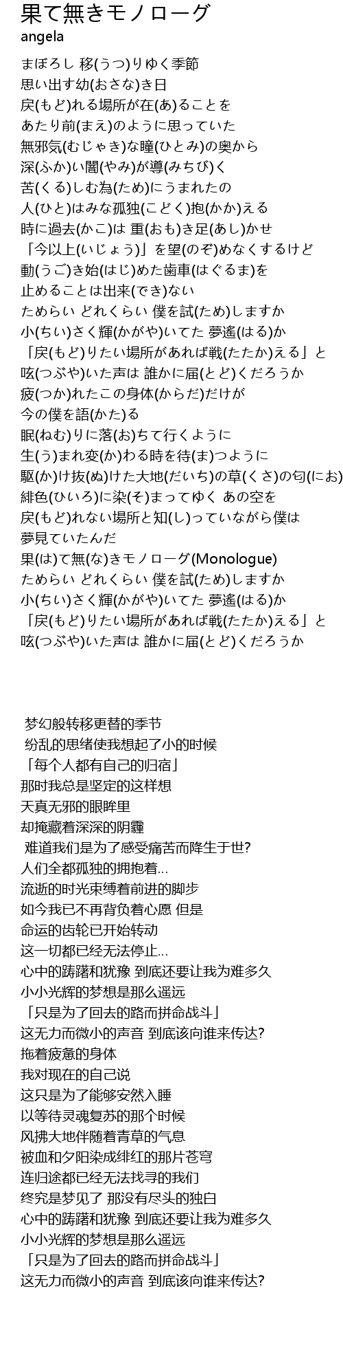 | 歌曲 | 果て無きモノローグ |