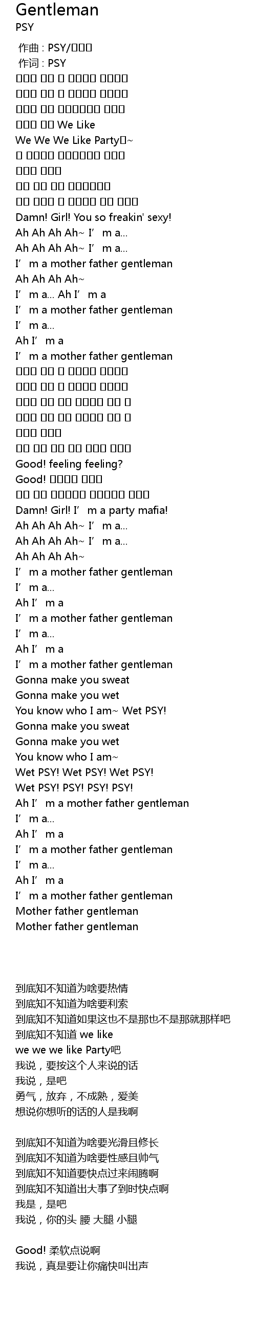 | [00:01.00] | 作词 : PSY |