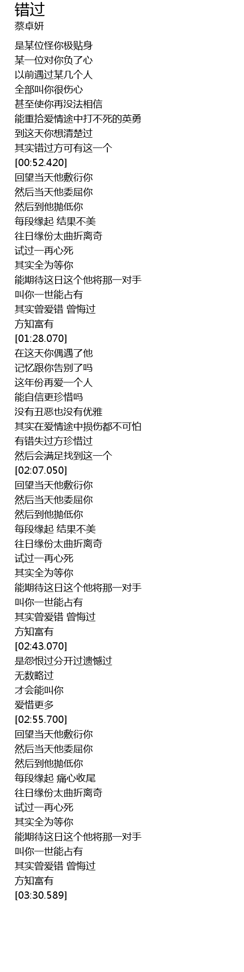 | [03:23.959] | 其实曾爱错 曾悔过 |