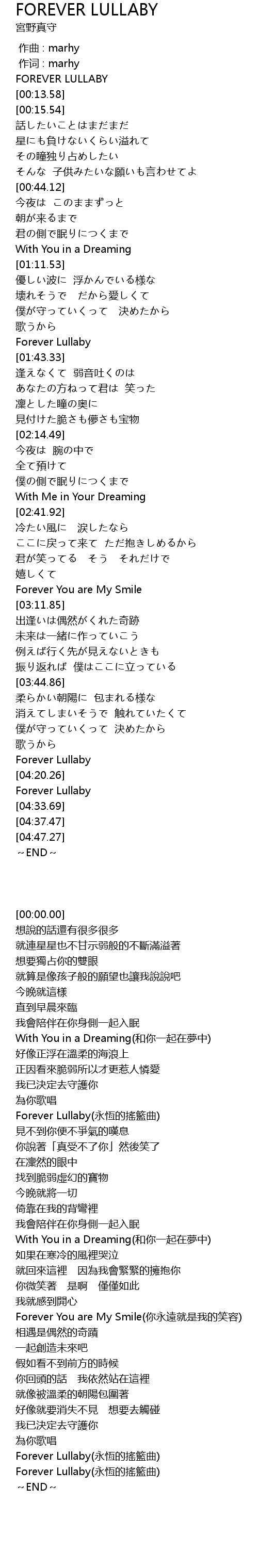 | [04:27.50] | Forever Lullaby |