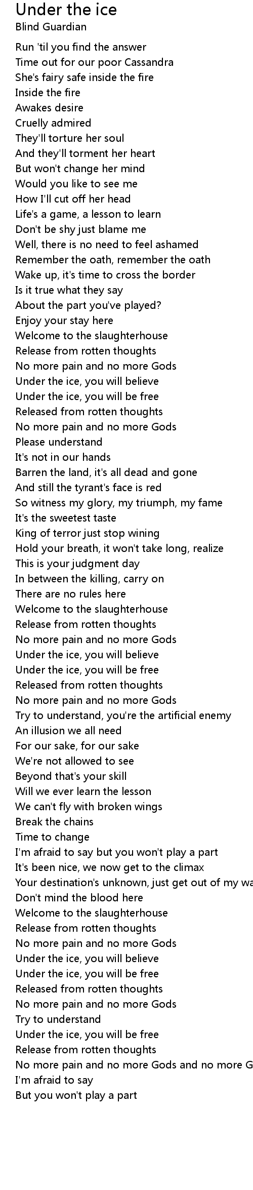Under the ice, you will be free |