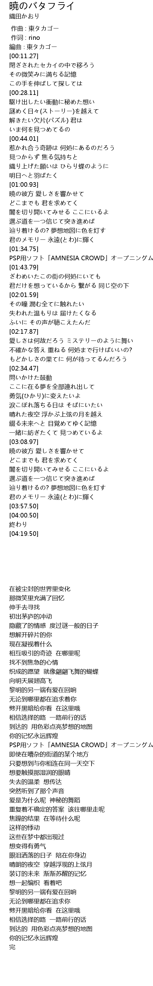 | [01:38.79] | PSP yong AMNESIA CROWD |