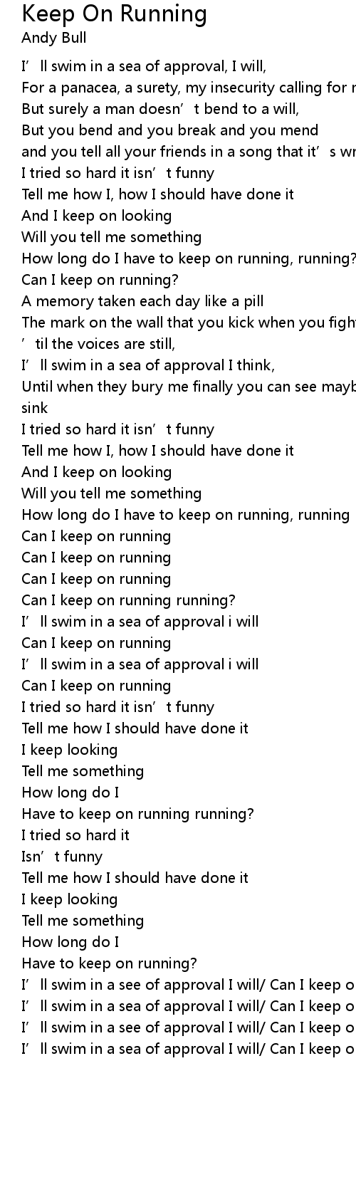 | I' ll swim in a sea of approval I will Can I keep on running running? |