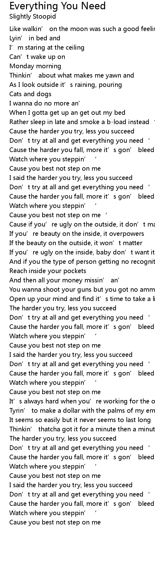 | Cause the harder you try, less you succeed | |