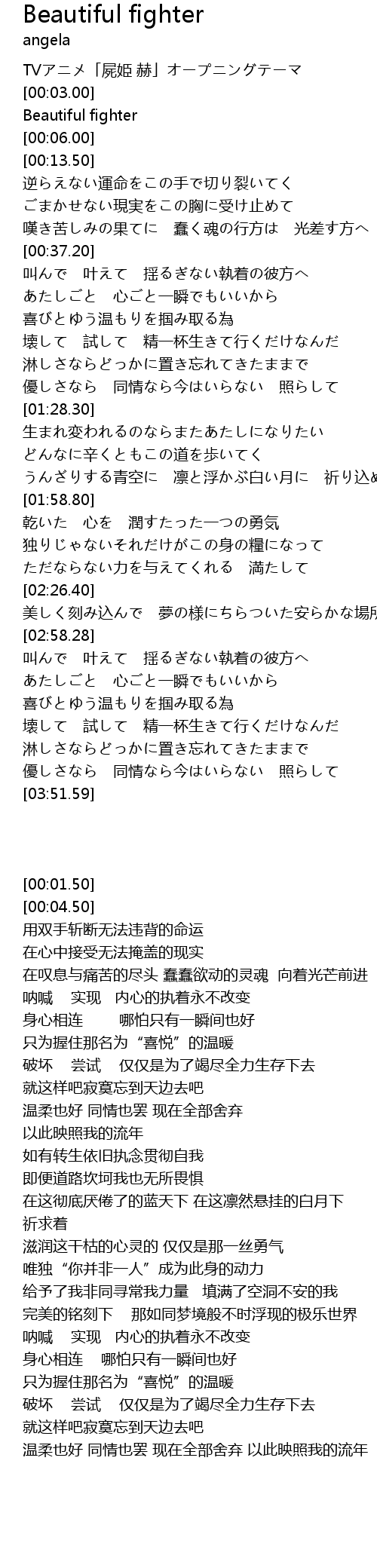 | [00:15.40] | 逆らえない運命をこの手で切り裂いてく |