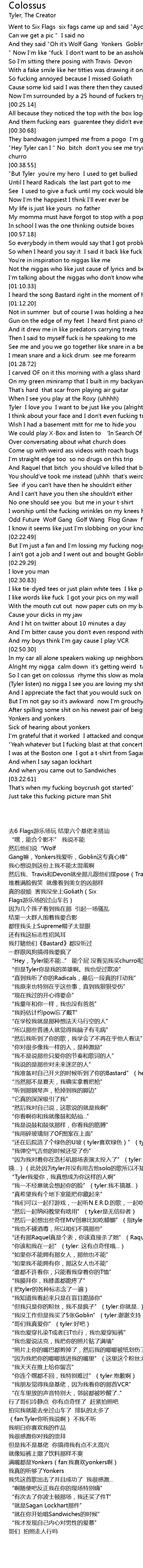 | [01:41.34] | “Tyler我爱你,我真想成为你这样的人啊” |