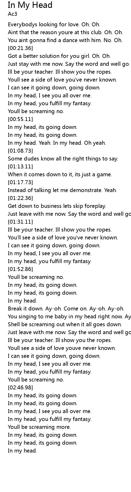 You singing to me baby in my head right now. Ay-oh. Ay-oh. Come on. |