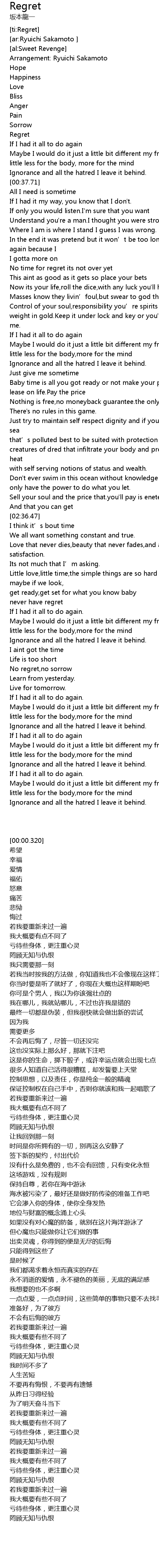 | [03:56.72] | 不要再有悔恨,不要再有遗憾 |