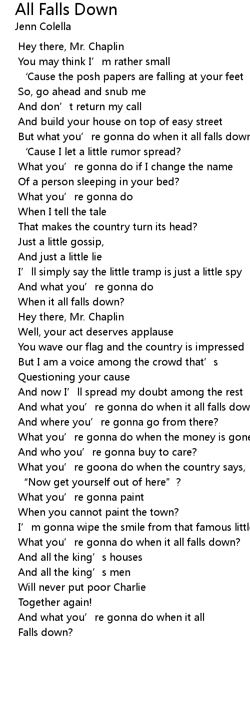 | [00:40.292] | But what you' re gonna do when it all falls down |