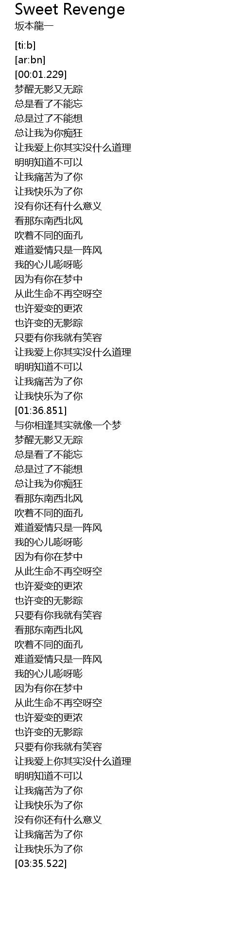 | [01:33.23] | ràng wǒ tòng kǔ wèi le nǐ |
